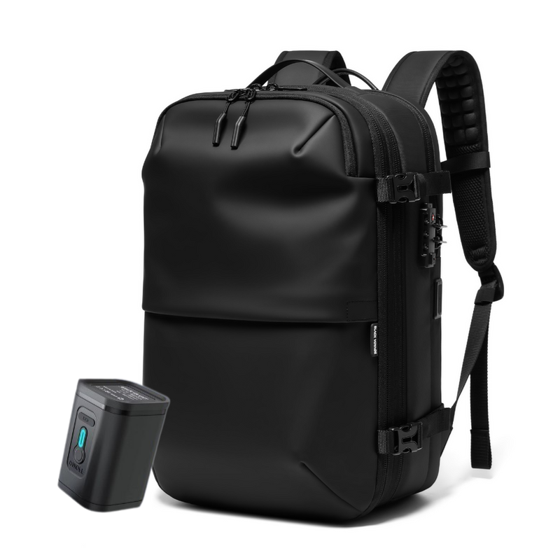 Neměli byste mít žádné problémy vzít náš batoh na palubu letadla. Technologie vakuového balení v batohu je plně v souladu s předpisy TSA a pokyny leteckých společností. Funguje bez baterií nebo elektrických komponent, což ji činí bezpečnou pro leteckou dopravu. Navíc jeho kompaktní a efektivní design se snadno vejde do úložného prostoru nad hlavou nebo pod sedadlo, což zajišťuje bezproblémový cestovní zážitek. Nicméně je vždy nejlepší se předem poradit s leteckou společností.