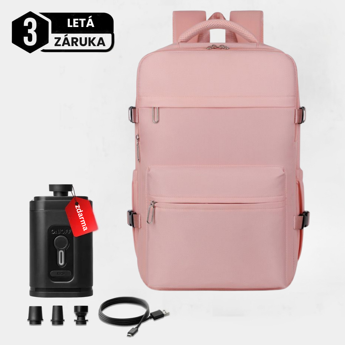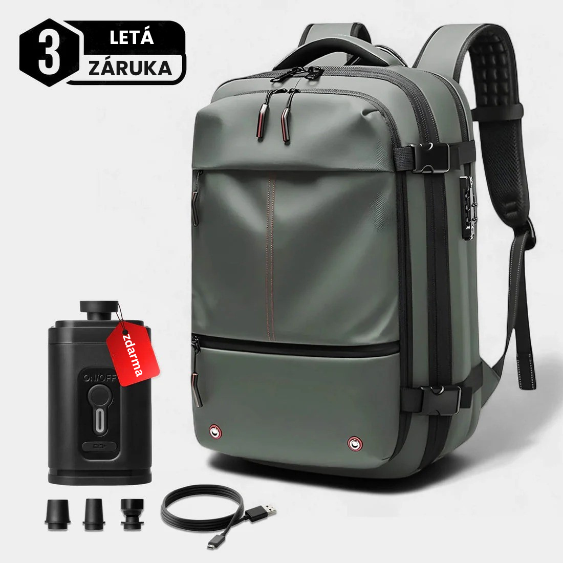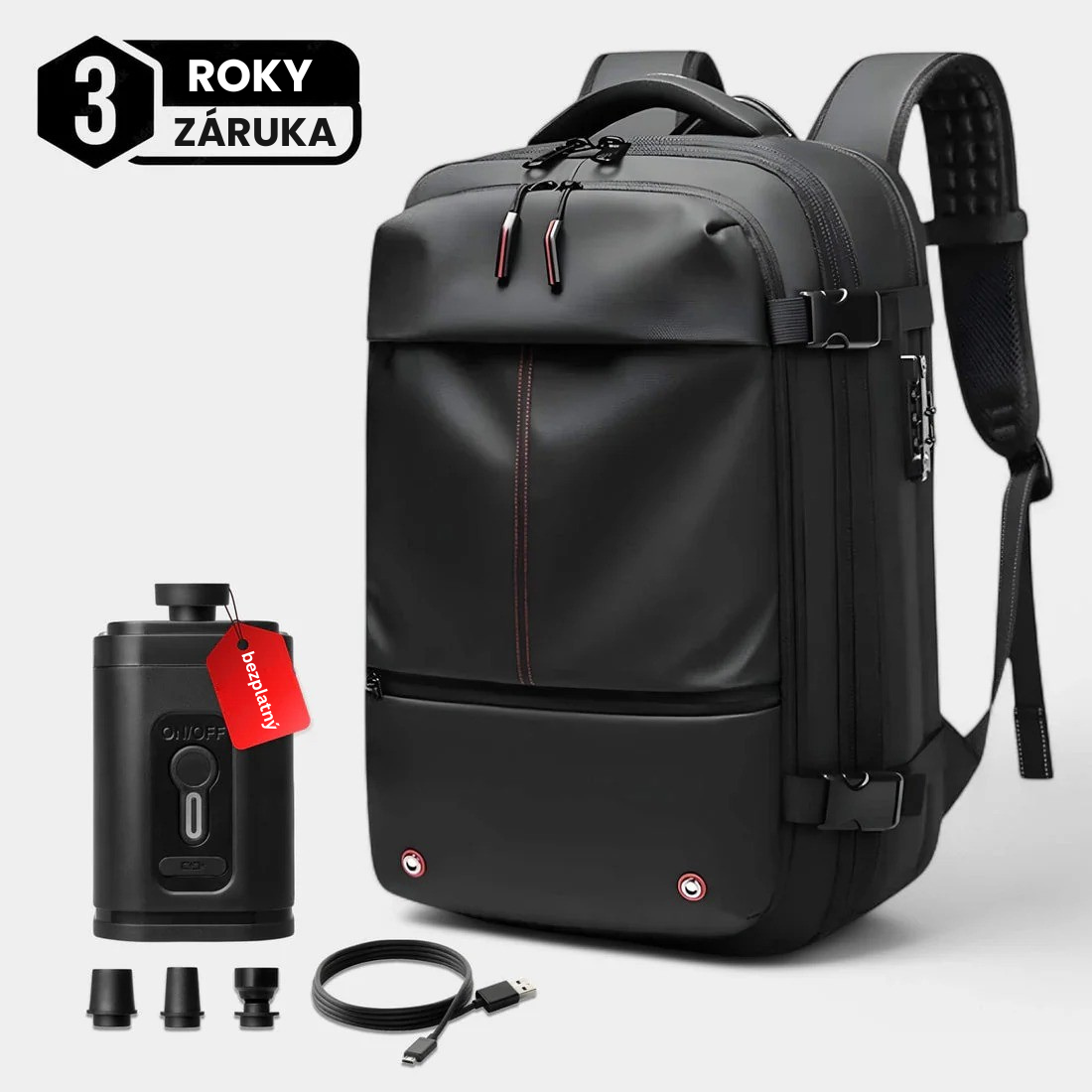 Vakuově uzavíratelný batoh, díky kterému sbalíte více a vyhnete se drahým poplatkům za odbavená zavazadla. Součástí balení je přenosná vakuová pumpa pro rychlou a snadnou kompresi během pár vteřin.